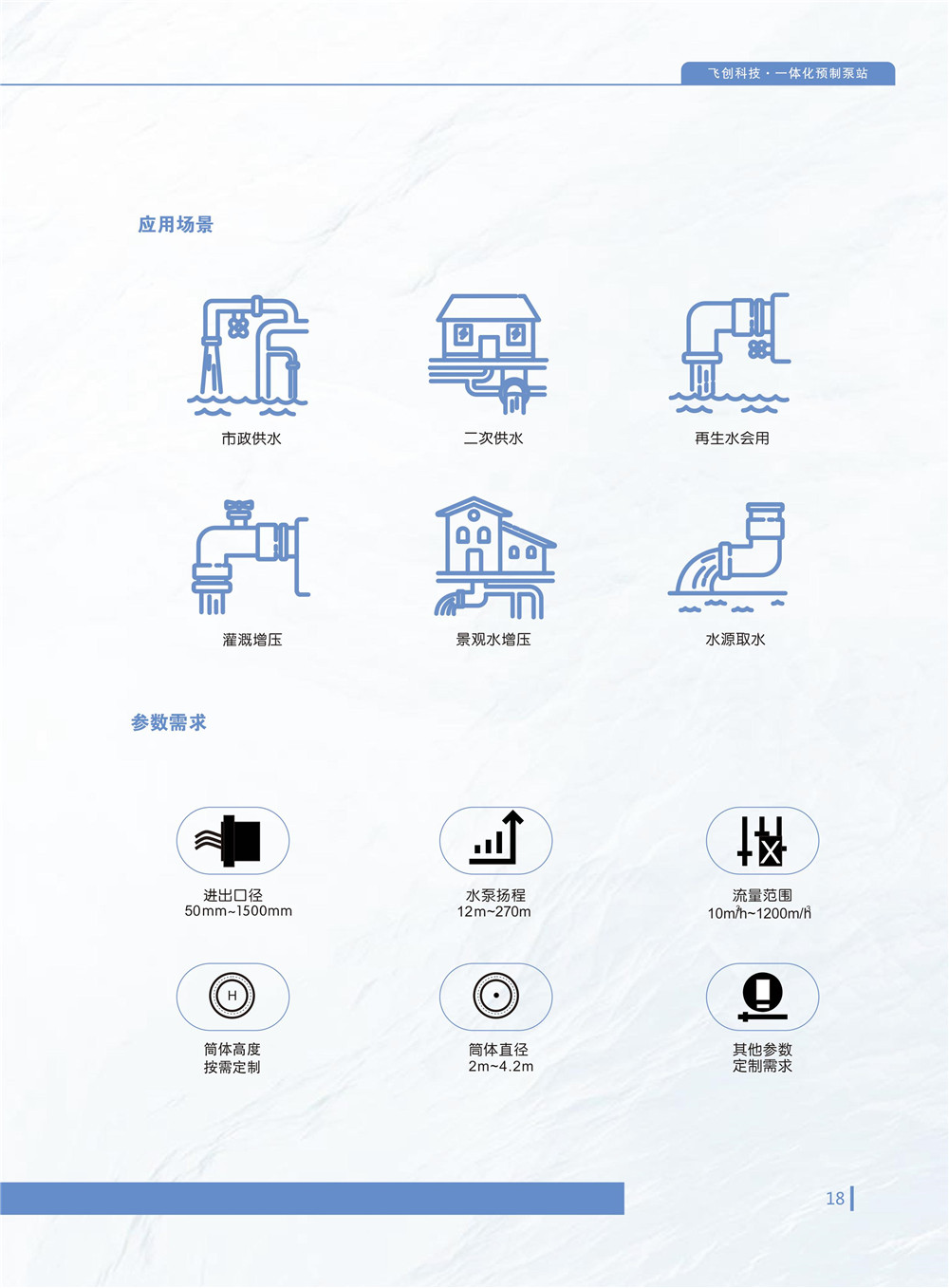 智能一體化泵站,適用於飲用水、汙水、雨水、廢水泵排等應用場景。泵站產品具有工期短,易安裝,體積小,效率高,壽命長,智能化網絡化等現代產品特點,相比傳統泵站係統,土方量少,可節省一半以上投資。