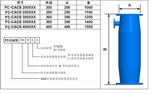 四、FC-CACS冷凝器在線清洗係統選型說明: