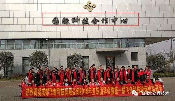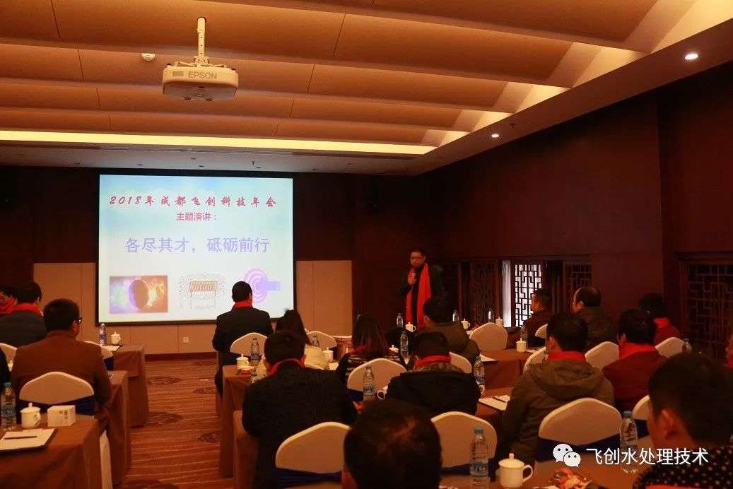 2018年2月2日上午,以“科技淨水,改善環境”為主題,由成都飛創科技有限公司主辦的“2018年第一屆飛創科技論壇”在成都銀河.雲瑞酒店隆重舉辦。公司董事長歐群飛先生、副總歐培洲先生、首席顧問唐宏亮先生、嘉賓曾兵先生以及全體員工出席。論壇由綜管部主任王豔女士主持。