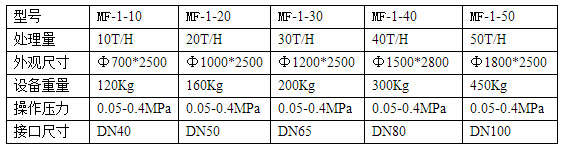 注:以上參數是針對含有500ppm的粉末活性炭混合液或0.5%的矽藻土混合液獲得,具體水量參數請根據水質情況進行變化,請谘詢飛創科技。