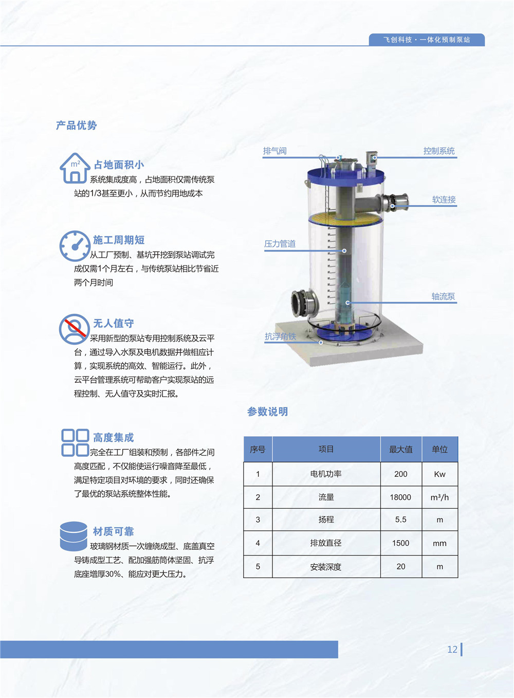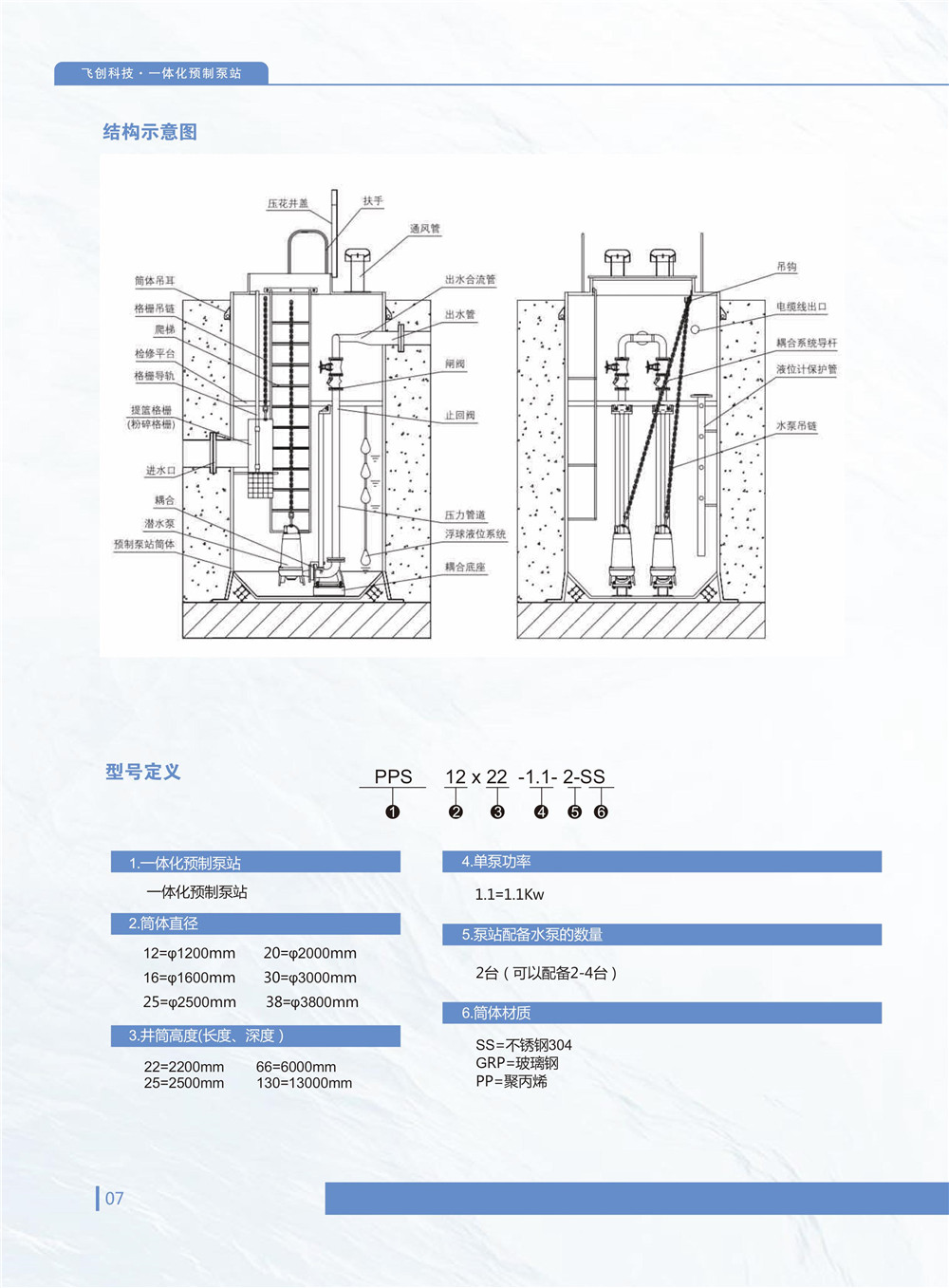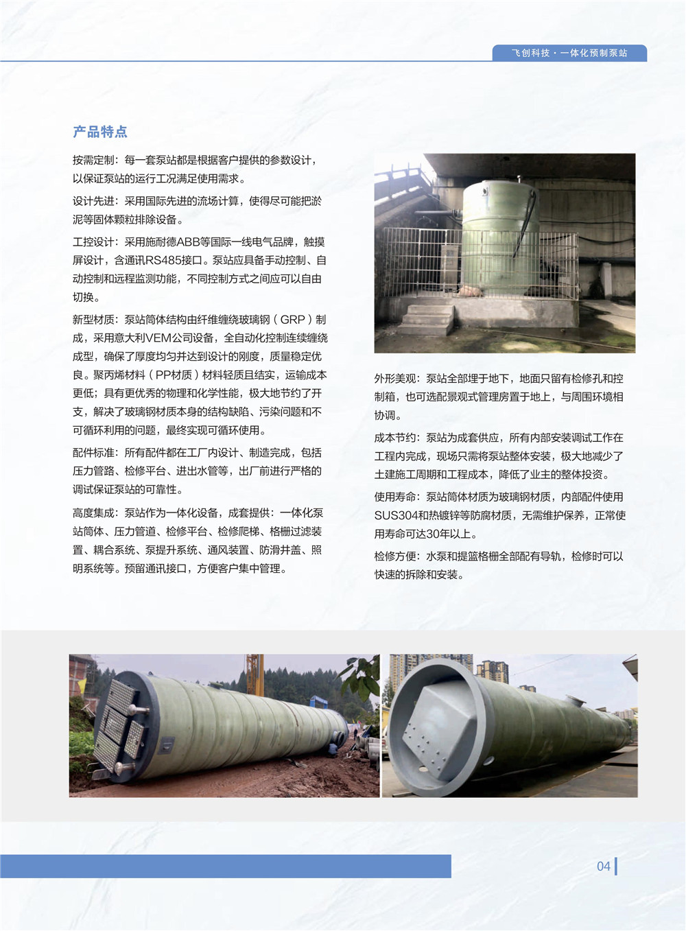 泵站是為水提供勢能和壓能,解決無自流條件下的排灌、gongshuiheshuiziyuantiaopeiwentidedonglilaiyuan。zuoweimuqiandezhuliubengzhan,chuantonghunningtubengzhanyingyongyupaishuixitong。raner,suizheshijiandetuiyi,chuantongbengzhanzaichangqideyunxingzhongyebaoluchuyixienanyikefudebiduan,liruchi壁易腐蝕、泵坑雜質沉積、以及集成難度低,很難實現有效的管理與監控等、為了應對這一挑戰,我公司的技術人員對玻璃鋼儲罐產品延伸做了大量測試,並成功研發了一體化預製泵站(簡稱IIP)。