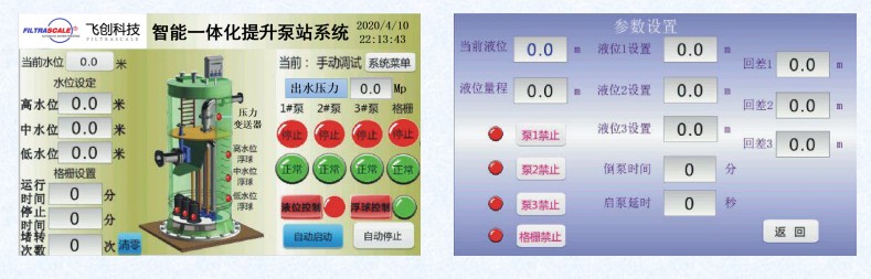 4.一體化汙水智能控製係統,該係統智能監控設備運行情況,高液位自動開啟,低液位自動停止,超低液位保護並報警。配合手機端和PC端專用控製軟件,可遠程啟停設備,遠程查看設備動態運行情況,實時數據,報警信息等。