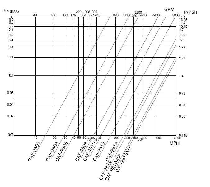 過濾器清潔時的壓力損失:0.1 bar (1.45 psi)