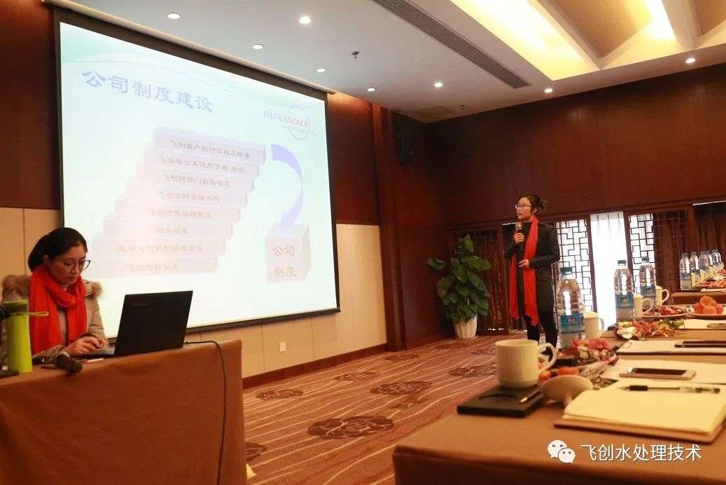 公司各部門員工分別作了關於水處理設備常見故障及對策、物聯網技術與過濾行業、過濾器的發展現狀與展望、電絮凝的發展現狀和展望、循環冷卻水發展與展望等介紹。