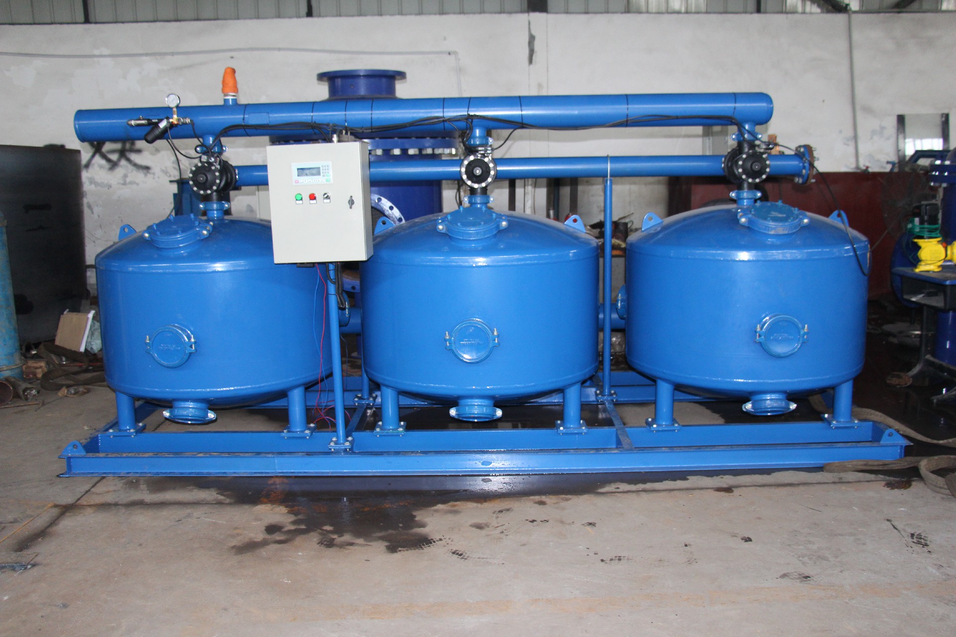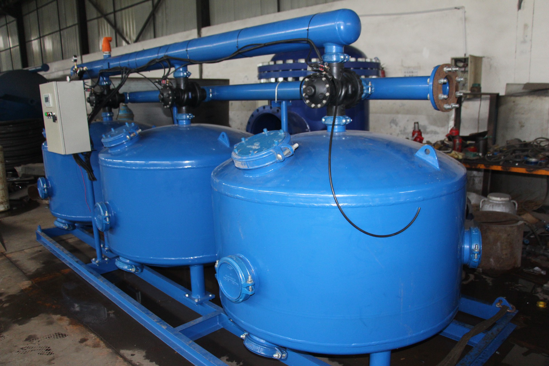 可(ke)采(cai)用(yong)時(shi)間(jian),壓(ya)差(cha)等(deng)多(duo)種(zhong)方(fang)式(shi)自(zi)動(dong)啟(qi)動(dong)反(fan)衝(chong)洗(xi),係(xi)統(tong)內(nei)各(ge)過(guo)濾(lv)器(qi)依(yi)次(ci)進(jin)行(xing)反(fan)衝(chong)洗(xi),其(qi)他(ta)過(guo)濾(lv)器(qi)仍(reng)然(ran)在(zai)過(guo)濾(lv),以(yi)保(bao)證(zheng)係(xi)統(tong)在(zai)反(fan)衝(chong)洗(xi)過(guo)程(cheng)中(zhong)不(bu)中(zhong)斷(duan)供(gong)水(shui)。